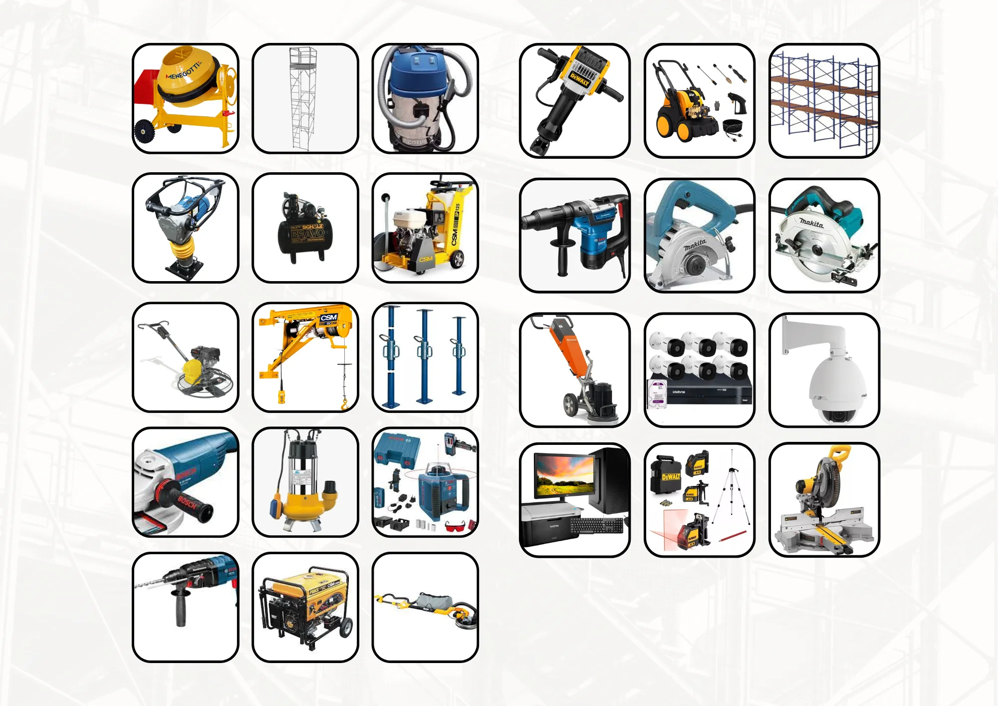 Andaimes, máquinas, equipamentos de mão, eletrônicos e tudo o que sua obra precisar.